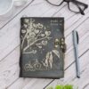 vintage handmade leather journal. Crafted with genuine leather, it radiates authenticity and charm, perfect for those who appreciate classic craftsmanship. The premium antique lock closure adds a touch of elegance and security, ensuring your thoughts and memories are safeguarded within its pages. Inside, you’ll discover 200 brown handmade pages, providing ample space for your musings, sketches, and stories to unfold. Whether it’s for journaling, sketching, or planning, this versatile journal is a timeless companion for your creative endeavors. Treat yourself or a loved one to this exquisite piece, a celebration of tradition and creativity
